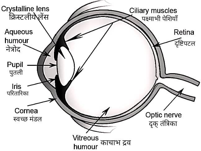 मानव नेत्र का एक नामांकित आरेख बनाएं।