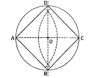 • व्यास AOC का लम्बअर्धक खींचें जो वृत्त की परिधि को बिन्दु B और D पर काटें।