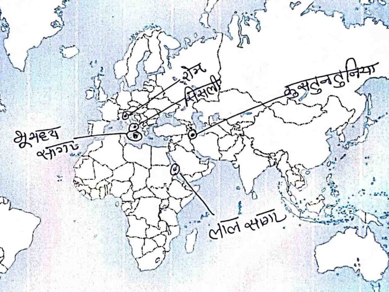 18. दिए गए रेखा मानचित्र में निम्नलिखित स्थानों को दर्शाइए :