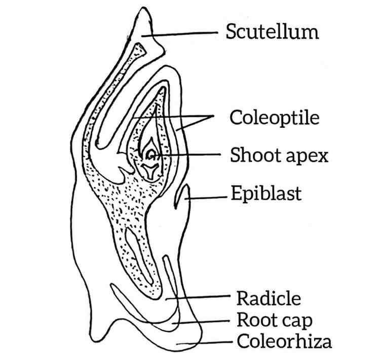 26. Draw a well labelled diagram of L.S. embryo of a grass.