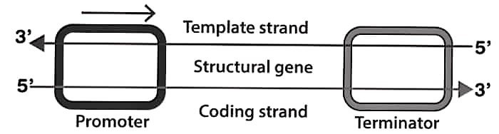 (iii) In a transcription unit, only one strand of DNA (called the template strand) is transcribed, while the other strand (the coding strand) has the same sequence as RNA (except thymine is replaced by uracil).