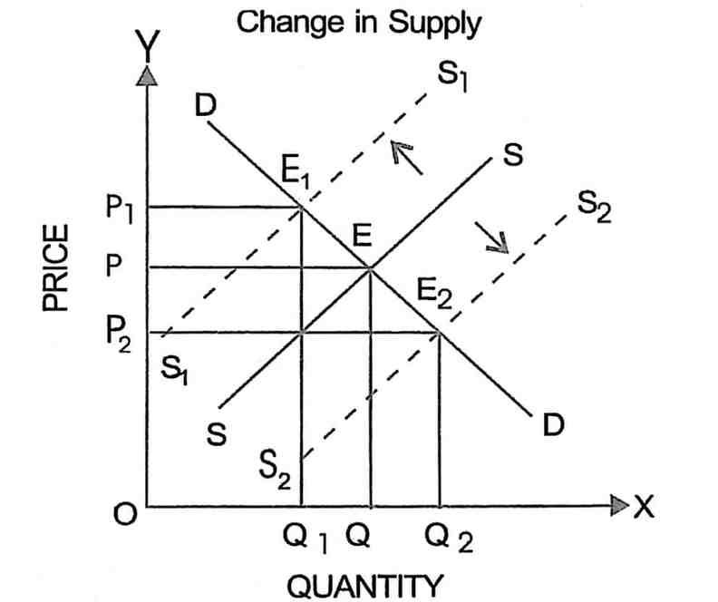 उत्तर – माँग के स्थिर रहने पर, जब आपूर्ति बढ़ती है, तो संतुलन कीमत गिर जाती है और संतुलन मात्रा बढ़ जाती है, जबकि आपूर्ति कम होने पर संतुलन कीमत बढ़ जाती है और संतुलन मात्रा घट जाती है।