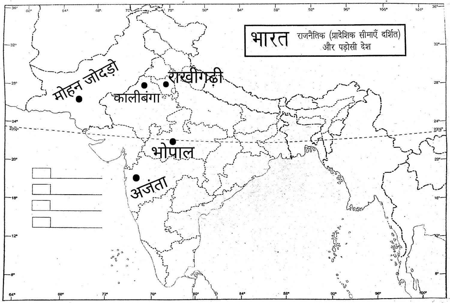 18. दिए गए रेखा मानचित्र में निम्नलिखित स्थानों को दर्शाइए :