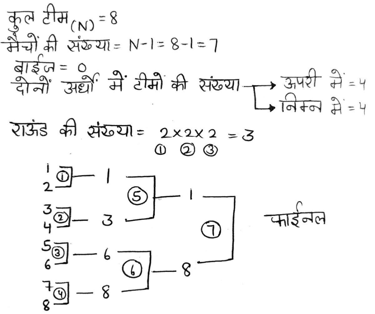 नॉक आउट पद्धति में आठ टीमों का फिक्स्चर तैयार करें।