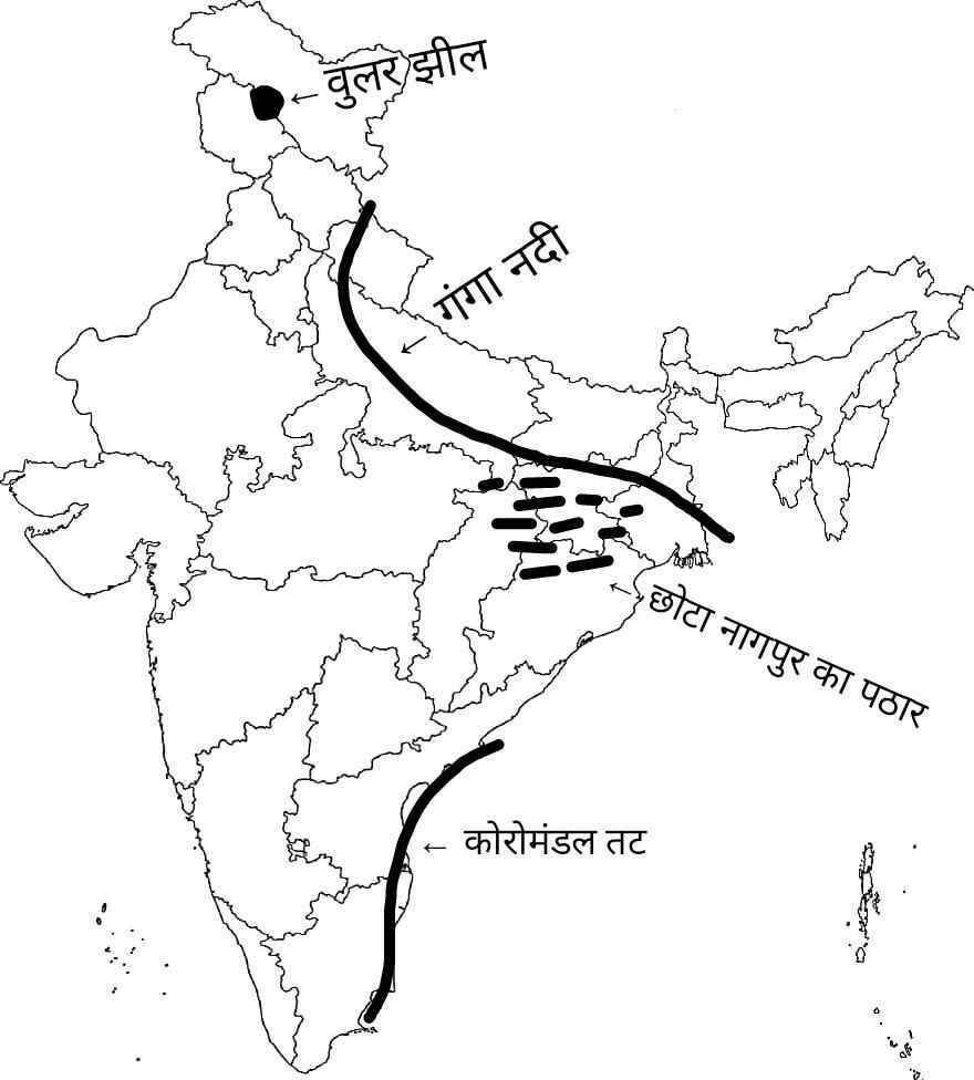 Q30. भारत के रेखा मानचित्र पर निम्नलिखित को दिखाइए :