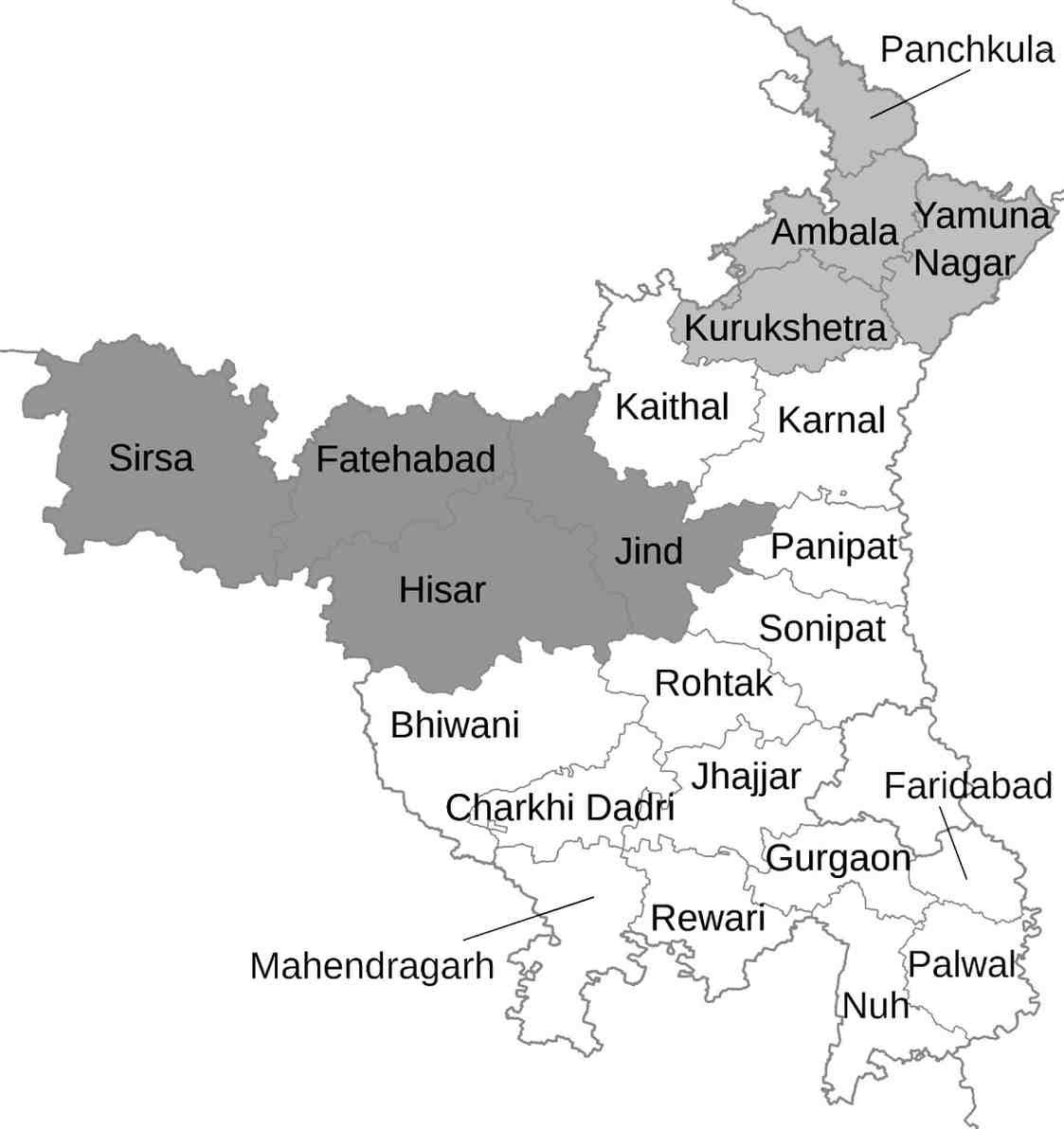 उत्तर – हिसार, सिरसा और अंबाला