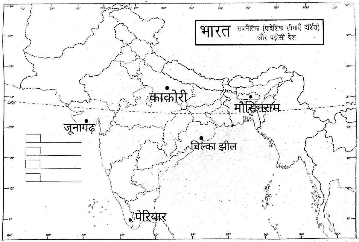 38. भारत के मानचित्र पर निम्नलिखित को दर्शाए :